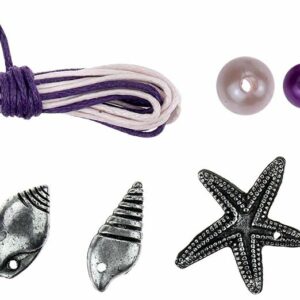 Бусины пластиковые, набор для изготовления украшений, розовые тона, элементы — жемчуг диаметром 10/8/6 мм, нежно-розовый, фиолетовый, металлические подвески: морская звезда 23х21 мм, морской конёк 12х27 мм, ракушки 10х17/13х13 мм, двухцветная нить. 30 г.