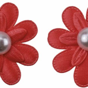 3D самоклеящиеся тканевые украшения, рисунок: цветы, диаметр 37 мм, красные с жемчужиной. 6 шт.