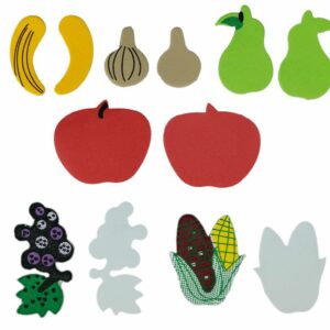 Наклейки из пены. Формы: фрукты| овощи| микс цветов и размеров. 51 шт.