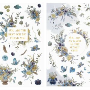 Переводные наклейки цветы синие тона 2 листа. Инструкции: вырежьте элемент, который вы хотите использовать, снимите заднюю прозрачную пленку, приклейте элемент к поверхности, прижмите его, затем потрите, снимите переднюю прозрачную пленку.
