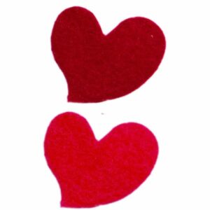Наклейки из фетра. Узор: сердечки 30 х 25 мм, красные, темно-красные. 50 штук.
