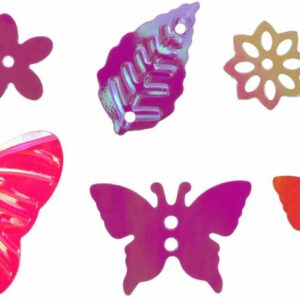 Набор пайеток розового цвета, 6 узоров, узоры: бабочки 22х18/17х12 мм, диаметр цветов 9/10/11 мм, листья 9х16 мм. 8х4 г.