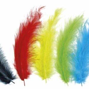 Перья декоративные| длина 11|8-15 см| цвета: желтый| зеленый| красный| черный. 20 штук.