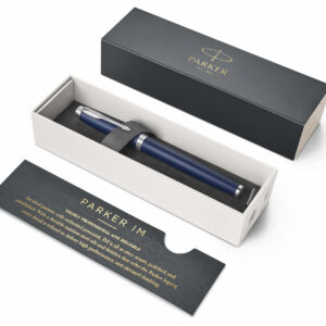 Цвет: Синий матовый / хромЦвет клипа: ХромКорпус: ЛатуньОтделка корпуса: Многослойное матовое лаковое покрытие| хромирование деталейСъемный колпачокИспользуются стержни Parker для ручек-роллеров