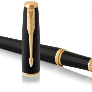 Материал корпуса ювелирная латунь| покрытая матовым черным лакомОтделка зажим колпачка и отдельные элементы дизайна: нержавеющая сталь| покрытая золотом; зона захвата: полированный черный пластикЦвет черный / золотойМеханизм съемный колпачокСтержень черныйТолщина пишущего узла FДлина 13|8 смКомплектация 1 стержень в коробке| подарочная коробка с инструкциейОсобенности используются стандартные стержни-роллеры Parker; поставляется в обновленной подарочной коробкеСтрана-производитель Франция