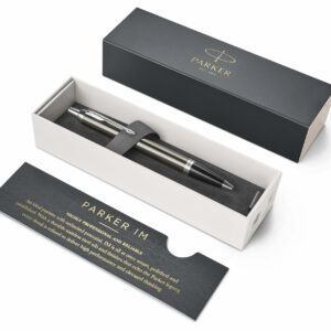 Материал корпуса ювелирная латунь| покрытая лаком цвета кофе с круговой полировкойОтделка блестящий черный пластик в зоне захвата| отдельные детали дизайна — латунь| отделанная хромомЦвет темно-серый / серебристыйМеханизм кнопочный нажимного действияСтержень синийТолщина пишущего узла MДлина 13|6 смКомплектация 1 стержень в ручке| подарочная коробка| гарантийный талон с инструкциейОсобенности используются стандартные шариковые стержни Parker; поставляется в обновленной подарочной коробкеПроизводство Франция