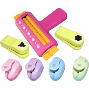 Творческий набор: гофрокартон для бумаги, 4 декоративных дырокола, узоры: бабочка, сердце, цветок, птица, 2 бумажных тиснителя, узоры: цветок, плюшевый мишка.