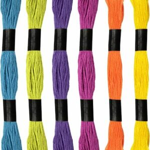 Набор из 6 ярких цветов. Длина каждого мотка составляет 8 м. Используется в основном для вышивки, но также и для других видов рукоделия, в том числе: отделка закладок, альбомов, поздравительных открыток и украшений ручной работы, например, плетение браслетов.