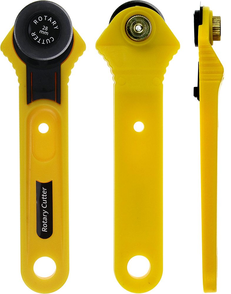 Круглый резак для резки по прямым и кривым линиям. Резка проще и точнее, чем ножницами. Предназначен для резки таких материалов, как ткань, бумага, пенопласт, войлок и фольга. При резке рекомендуется использовать подложку. Резак имеет фиксатор лезвия. Диаметр лезвия составляет 28 мм.