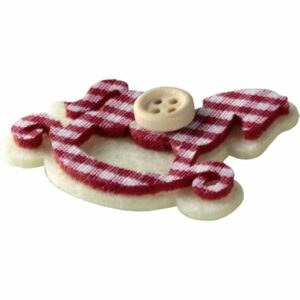 Аппликации из фетра в виде лошадок-качалок с декоративной деревянной пуговицей. Размеры: 40х35 мм|цвет — красно-бежевый. Упаковка: 6 шт.