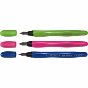 инновационные перьевые ручки для стандартных картриджей с прочным иридиевым наконечником в серебристом эргономичном корпусе с треугольной удобной рукояткой для максимального комфорта при письме| вентилируемый колпачок с простой в использовании защелкой в комплекте 1 чернильный картридж доступены в 3 ярких цветах : синий| розовый и зеленый